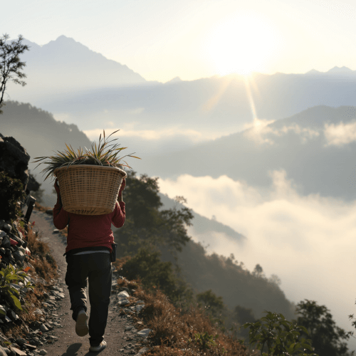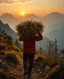 Um fünf Uhr morgens, wenn die ersten Sonnenstrahlen über den schneebedeckten Gipfeln des Himalaya erscheinen und die Täler aufgrund der hohen Luftfeuchtigkeit noch in dichten Nebel gehüllt sind, macht sich der nepalesische Sammler Mohan Bandhari vorsichtig auf den Weg über einen schmalen Bergpfad. Jede Bewegung kostet ihn Mühe, aber seine Schritte sind sicher – schließlich kennt er diesen Weg seit seiner Kindheit.
