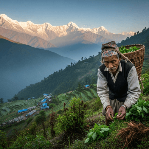Wenn die Morgensonne die Gipfel des Mahabharata-Gebirges in Nepal berührt, erwacht eine Welt, die in der Zeit stehen geblieben zu sein scheint. In den höheren Lagen der Ausläufer des Himalaya, wo die Luft kristallklar ist und jeder Atemzug ein Gefühl der körperlichen und geistigen Reinigung mit sich bringt, entfaltet sich die tägliche Geschichte des ayurvedischen Kräutersammelns.